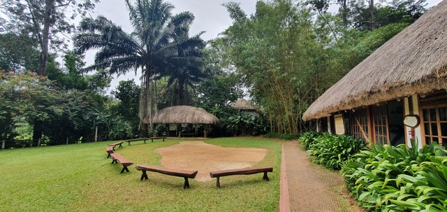 As part of their Covid-19 precautions, all restaurants on the property have gotten rid of the physical menu’s and we were asked to view the menu online via the link provided to us on check-in. The food was scrumptious and for me the highlight of the meal was the ‘Coffee Rasagulla’ which was basically a regular Rasagulla soaked in diluted Coffee. At first I was a little apprehensive of ordering something with Coffee in it as I am not the world’s biggest fan of Coffee but this was phenomenal. The Rasagulla was sweet enough that it countered the taste of Coffee and together it was a unique taste. After lunch we walked around the property a little bit before heading back to the cottage for some rest as we had gotten up early and drove a lot. We were warned to keep the glass doors closed for safety because we were in the middle of a jungle and we followed that rule. Even then I woke up to find a nice big spider in the bathroom and Jani found a frog on the deck sunning itself on the deck chairs.