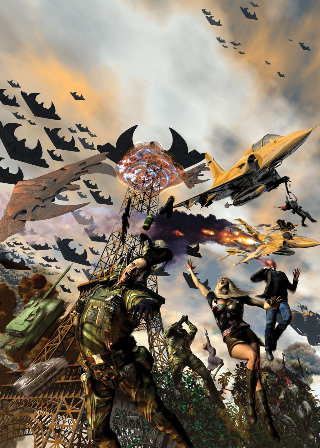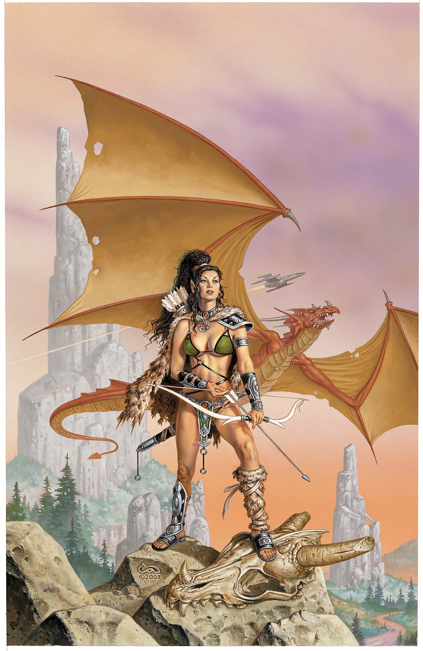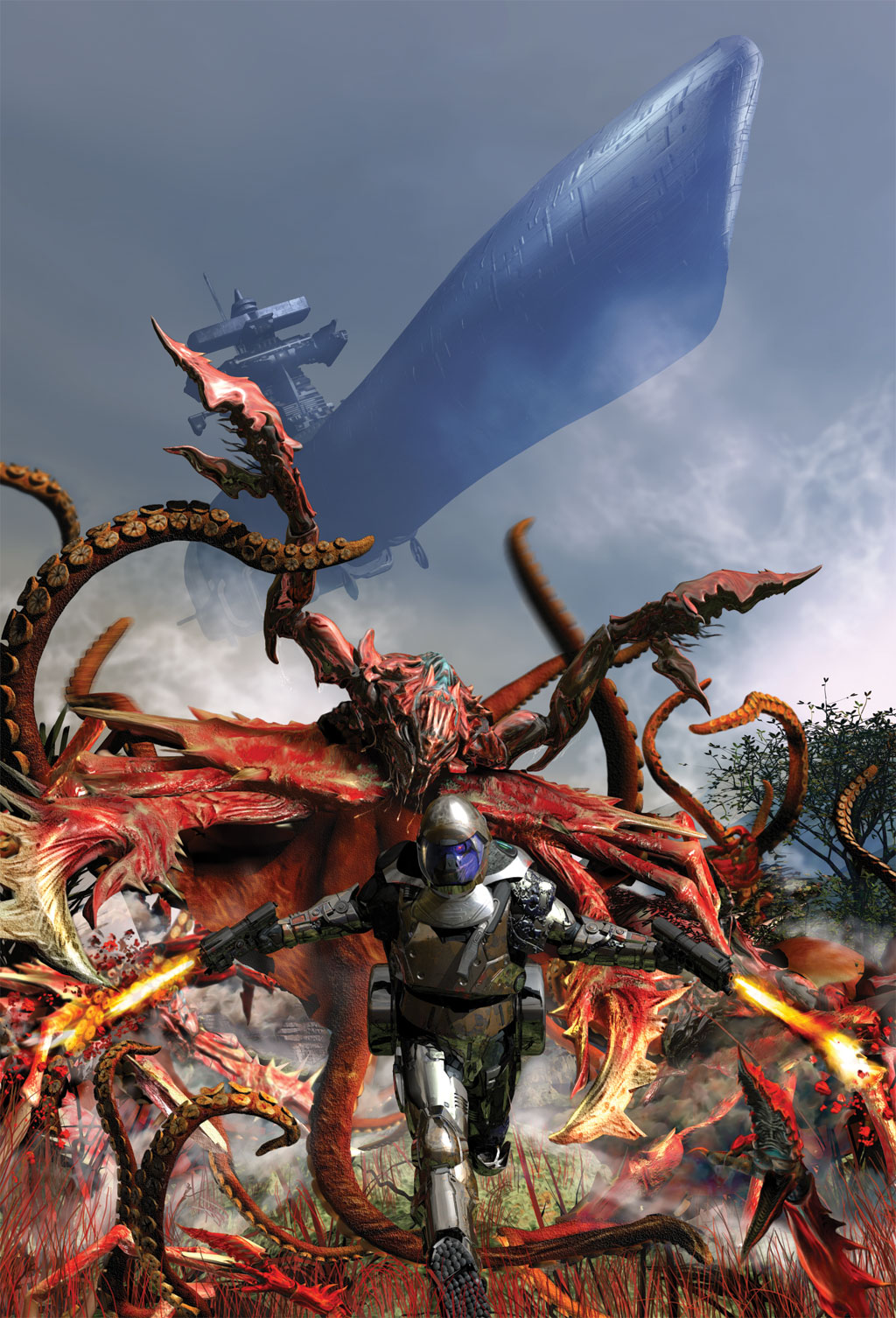 R-3 cover rough was created in Poser, Bryce 3D and Photoshop. Miriam was created in Poser and if this would have been the chosen rough I would line up a photo session with John Ringo’s girlfriend for the final cover. |