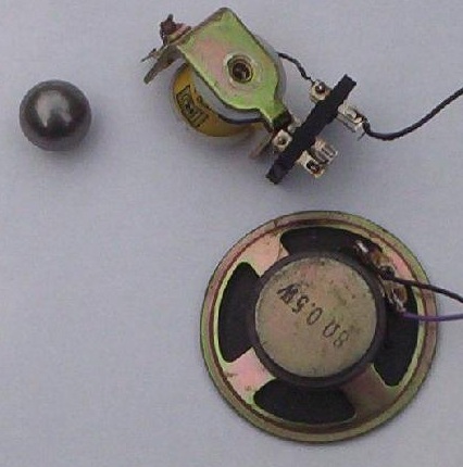 The iron ball drops down when the relay coil is de-energized and hits the table with a bang. A speaker is placed face down on the table; it picks up the vibrations and converts them to electrical signals. The weak electrical signals are amplified by the amplifier blocks on the Phoenix box and fed to a digital input pin which registers a transition from low to high. The kernel driver code can very easily compute the difference in time between the ball being released and the instance it hits the table, giving rise to an electrical transition on the input pin. This time difference can be plugged into a simple equation and the distance travelled can be computed.