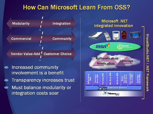 - and added a slide showing the 10 top contributors to the Linux kernel, with 8 of those being engineers employed at major IT corporations. Finally, he pointed out a link on the MSDN web site summarizing Redmond's position on SSSw.