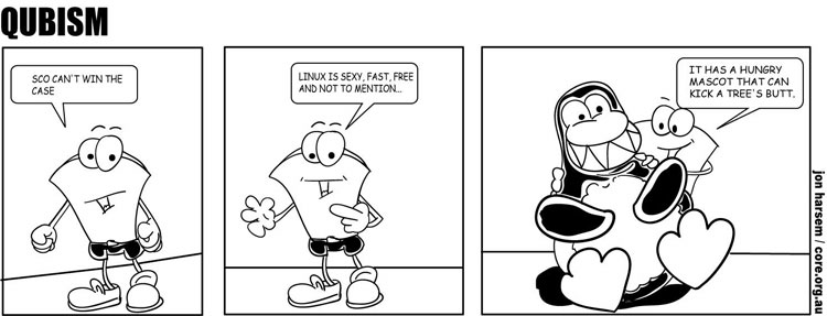 (The tree refers to SCO's logo. The SCO vs Linux lawsuit is covered in News Bytes.)