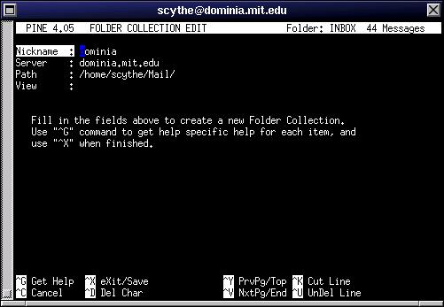 Simple, isn't it? Pine supports multiple IMAP collections, so you can add as many as you want and manage them all from one place.