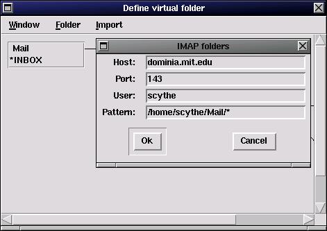 In TkRat, select "New/Edit Folder" from the Admin menu. Then select "IMAP Folders" from the Import menu, and type in your username, IMAP server, and a wildcard matching the folders in your mail folder directory. Note that TkRat expects a wildcard rather than a directory.