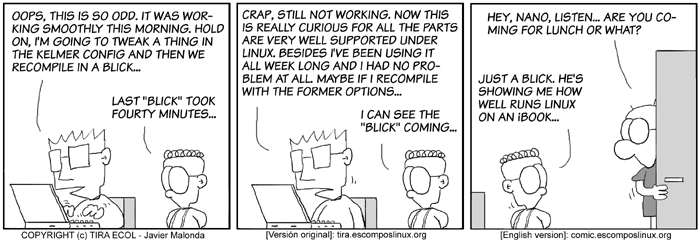 All Ecol cartoons are at tira.escomposlinux.org (Spanish), comic.escomposlinux.org (English) and http://tira.puntbarra.com/ (Catalan). The Catalan version is translated by the people who run the site; only a few episodes are currently available.