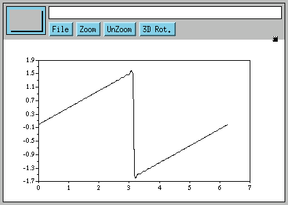 b = sin(x) - (1/2)*sin(2*x) + (1/3)*sin(3*x)We keep on adding terms to the series, the next term would be -(1/4)*sin(4*x), the next one +(1/5)*sin(5*x) and so on. Here is what I got when I plotted this series with 200 terms in it (you will have to write a function to do this for you):